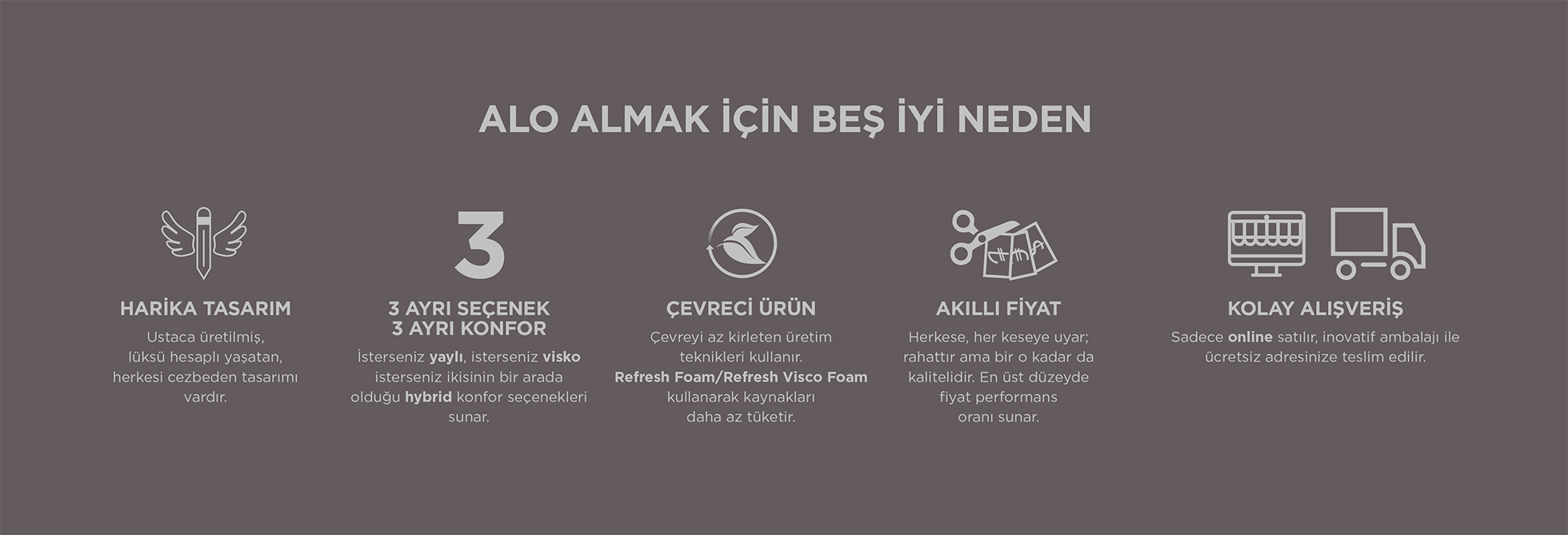 Olağanüstü sıkıştırılma ve genleşme özelliğiyle inovatif ambalajı, bize Alo yatağınızı kolaylıkla kapınıza kadar getirme fırsatı veriyor.